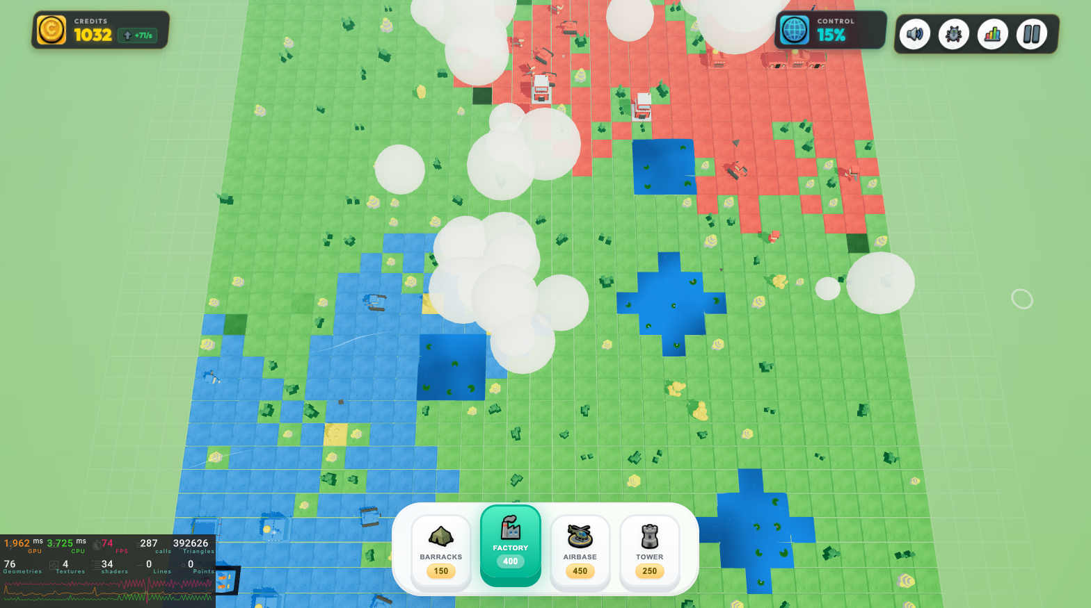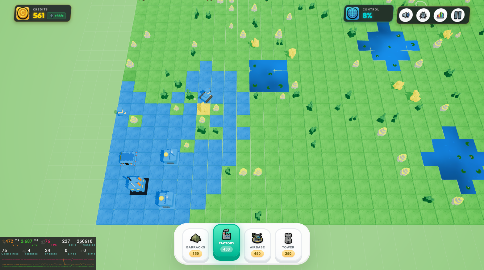 **Tile Wars: Tiny Tactics** is a **3D tile-based real-time strategy** game that runs in your browser. Expand across the map, earn income from **territory you control**, and outthink an RTS-style AI—no pay-to-win, no install required.